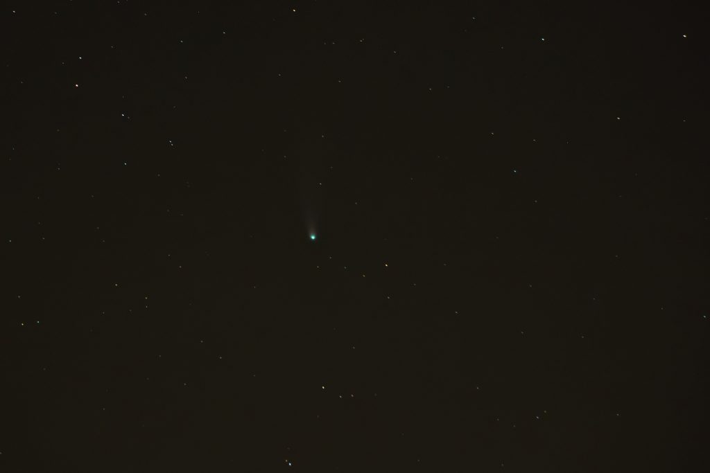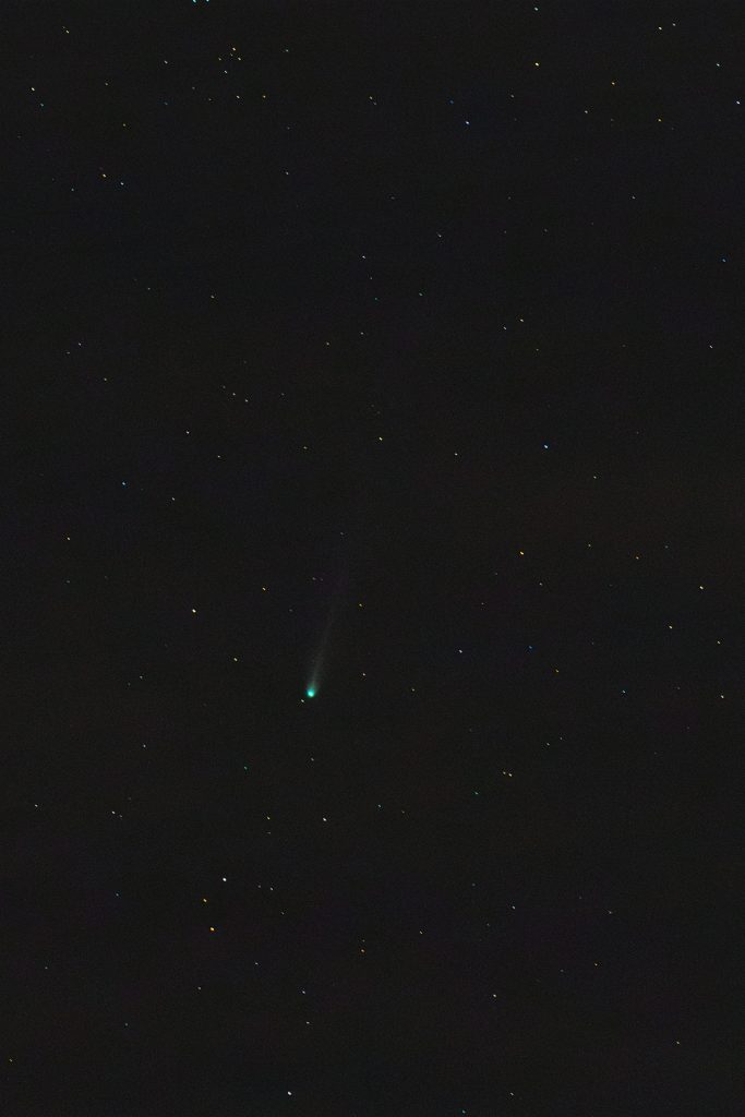 Hier eine Aufnahme mit einer DSLR und f 100mm. Der Komet stand am Westhimmel, es war leichte Bewölkung.
